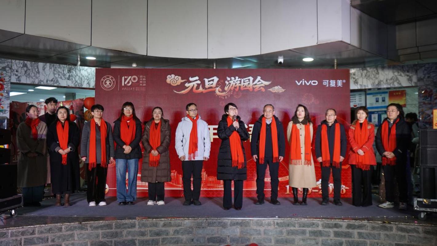 游园会现场喜气洋溢。红灯笼高挂,新年主题展板和“百卅辉光,七秩日新”等校庆元素装点各处。校领导们走进各活动区域,与同学们一起体验趣味游戏和手作项目,为大家的创意与热情点赞,并送上定制文创礼品。亲切的互动、暖心的祝福让欢声笑语流淌在游园会的每个角落。